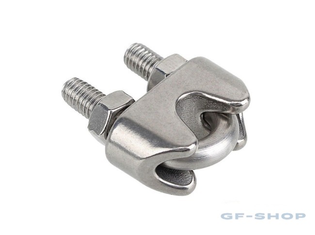 Зажим для троса нержавеющий 4 мм. Применяется для фиксации и крепления страховочного троса к насосу и скажинным оголовкам. Зажим из нержавейки не коррозирует и не окисляется в условиях повышенной влажности.
